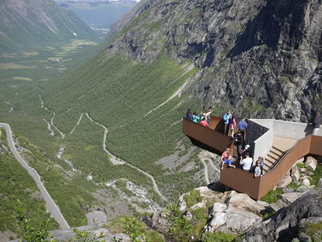 11. nap (jún. 28.): Megérkezés Alesundba a reggeli órákban. Fakultatív kirándulás keretén belül felfedezzük a várost, ahol hajónk kikötött: városnéző körút során megcsodáljuk Ålesund elragadó és olykor különc, Liberty-stílusú építészetét. A várost elhagyva keletre utazunk Sjøholt kis faluja felé, ahol a fjord öböllé válik és dél felé ömlik ki. Kirándulásunk a fenséges Storfjord mellett folytatódik, ami képeslapra illő tájjal színesíti utunkat. Ez a vidék a lazac-halászatról és a bútorgyártásról híres. Következő megállónk Stordal, amely számos bútorgyártó cégnek és egy bájos nyolcszögletű, 1789-ben épült templonak ad otthont. Utunk az édes eper termesztéséről híres Liabygda és Valldal falvakon keresztül folytatódik, egyre mélyebbre ásva a fjord útvesztőjének szívébe. Magunk mögött hagyva a tengerszakaszt, a völgyet követve haladunk át az impozáns Gudbrandsvujet kanyonon, amely a régió egyik leghíresebb és legkedveltebb városnéző pontja, ahonnan lenyűgőző kilátás nyílik. Utunk a kirándulás legmagasabb, a tengerszint felett 853 méterrel elhelyezkedő úton vezet végig, megtekinthetjük a híres Trollstigent, másnéven Trollok ösvényét, ami egy lélegzetelállító, télen a forgalom elől elzárt út, ami 11 elképesztő kanyarral, 12%-os meredekséggel és csaknem egyetlen sávval az Isterdalen-völgybe ereszkedik le. Megcsodáljuk a Trollfalat, Európa legmagasabb függőleges sziklafalát (915 méter), amely nyáron a világ minden tájáról érkező hegymászók kedvelt úti célja. A visszautat a tengerhez a délelőtthöz képest a Romsdalsfjorden másik oldalán tesszük meg, áthaladunk Innfjorden, Måndalen, Vågstranda and Vikebukt falvain, mielőtt átkelünk az Ørskog hegyvidéken és visszatérünk a hajóhoz vezető útra. A fakultatív program után visszatérés a hajóra, behajózás Vik-Sogn felé.