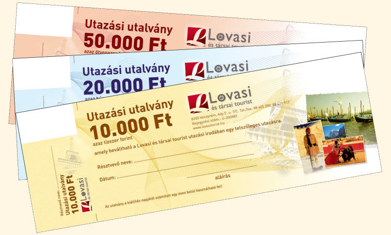 Lepje meg családtagjait, szeretteit, ismerõseit Lovasi és társai tourist utazási utalvánnyal, mely bármilyen utazásra beváltható a Lovasi és társai tourist utazási irodában.
